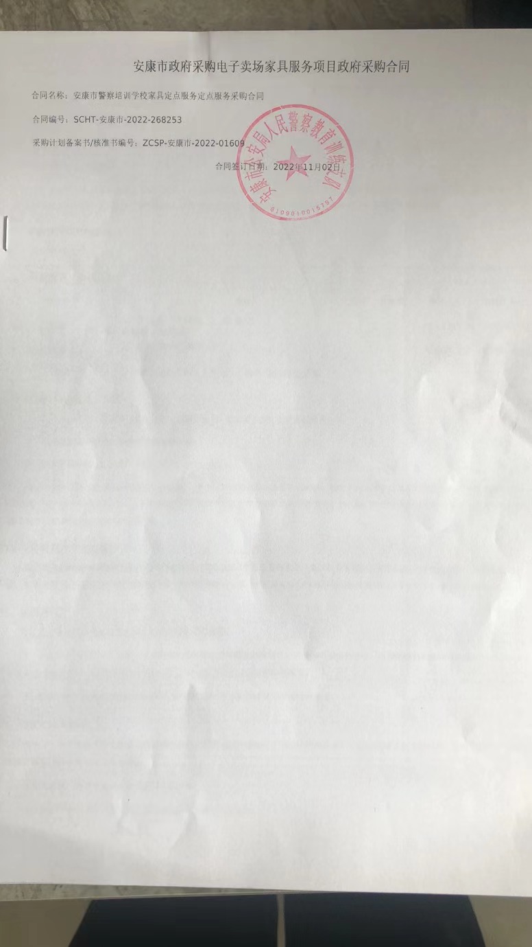 二、合同名称:安康市警察培训学校家具定点服务定点服务采购合同