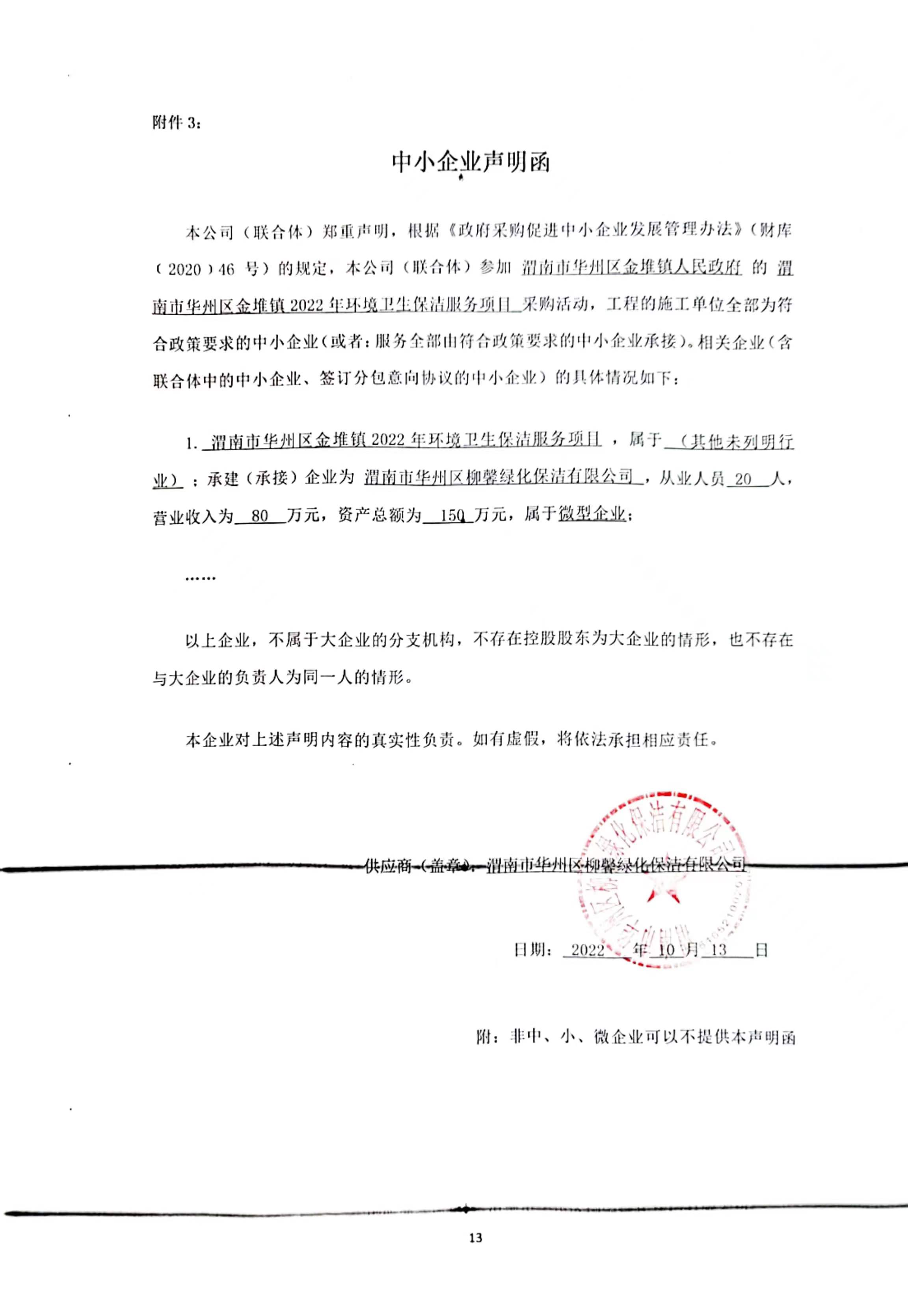 二、项目名称:渭南市华州区金堆镇2022年环境卫生保洁服务项目