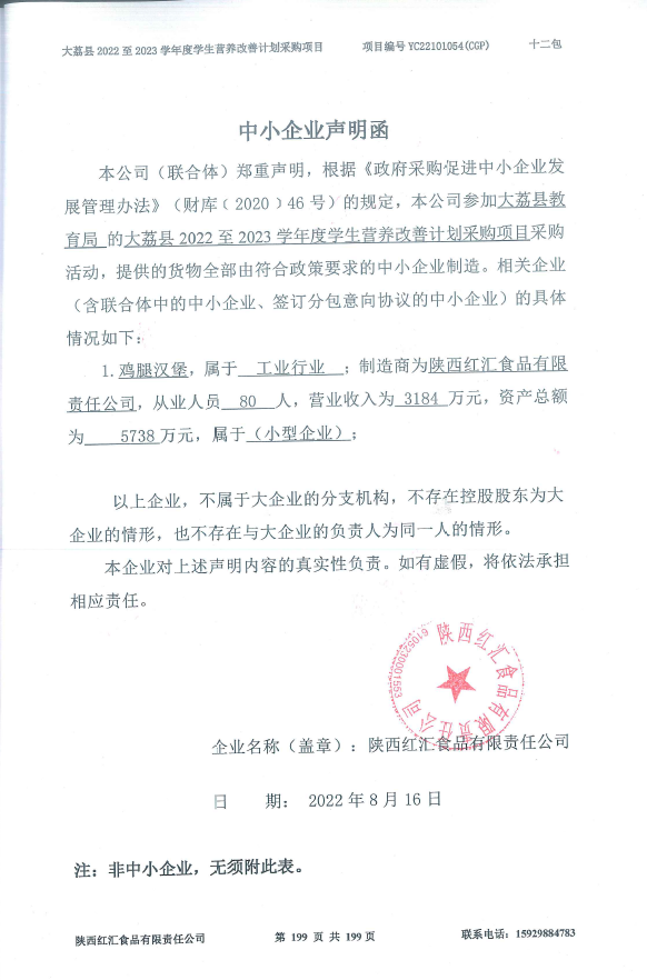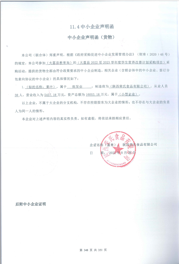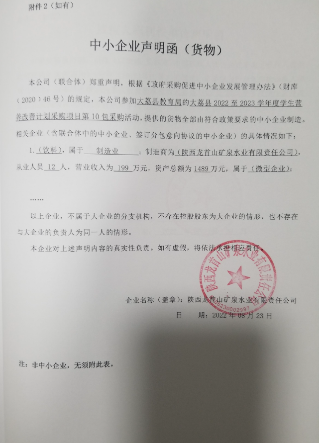 二、项目名称:大荔县2022至2023学年度学生营养改善计划采购项目