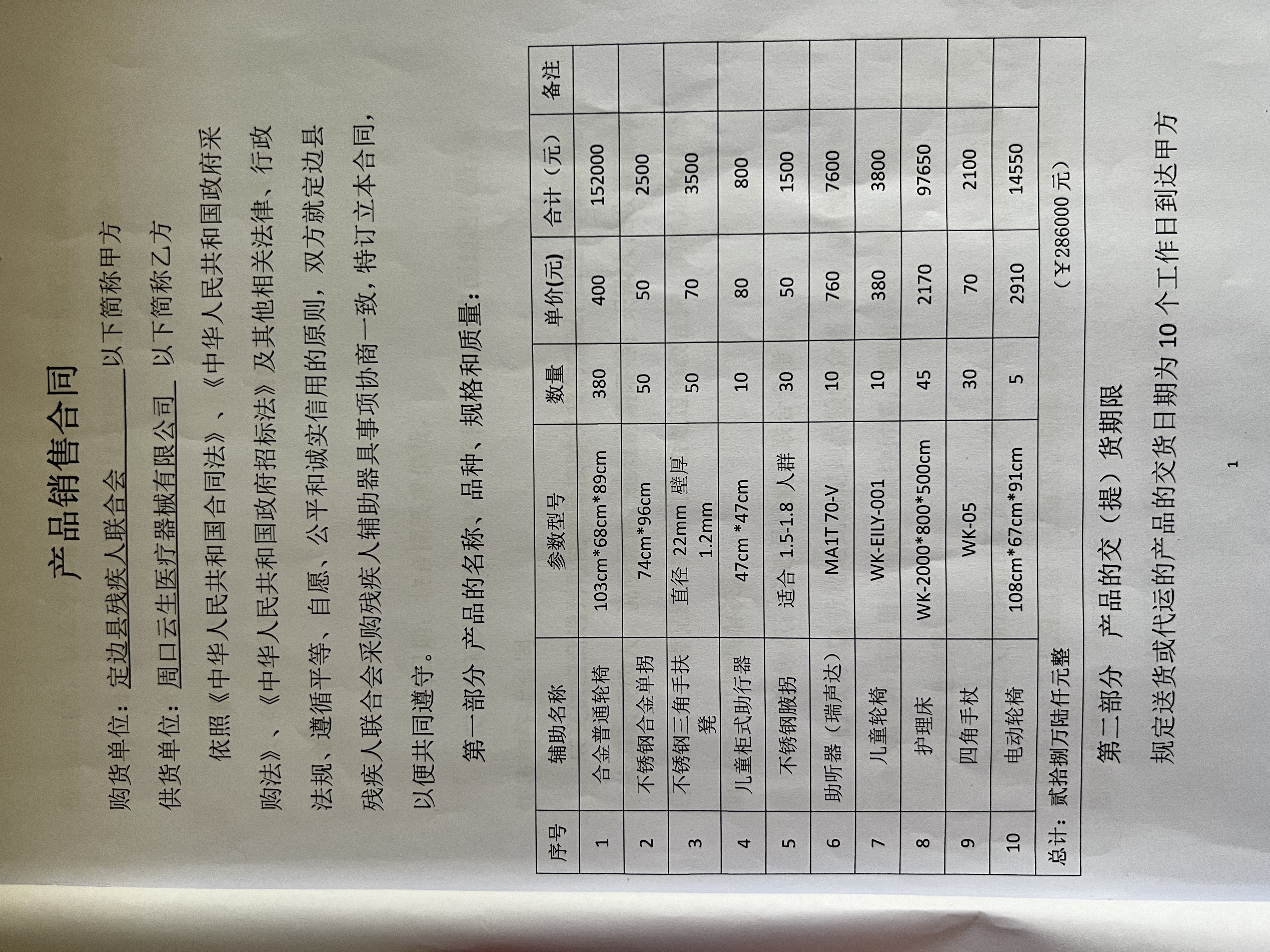 四、项目名称:定边县残疾人联合会采购辅助器具