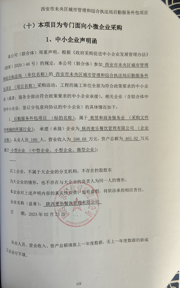 合同包1(西安市未央区城市管理和综合执法局后勤服务外包项目):