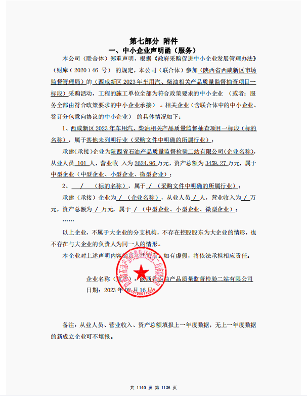 服务类(陕西省石油产品质量监督检验二站有限公司)