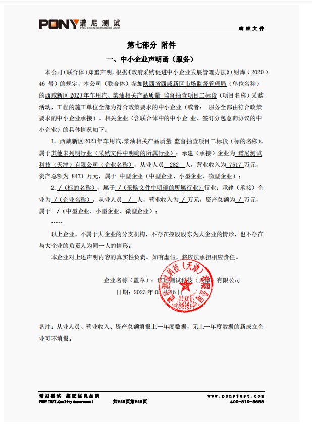 服务类(谱尼测试科技(天津)有限公司)