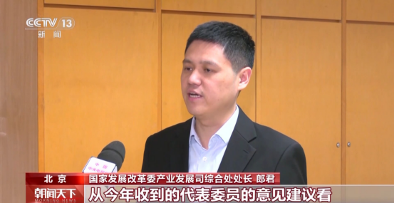 国家发展改革委产业发展司综合处处长 郎君:从今年收到的代表委员的意见建议看,主要集中在现代化产业体系建设方面,大家普遍关注传统产业优化提升、新兴产业培育壮大、服务业扩能提质。将以高度的政治责任感,认真研究,充分沟通,锚定智能化、绿色化、融合化方向,不断完善政策措施,提升工作效能,进一步夯实实体经济基本盘,推动产业迈向中高端。