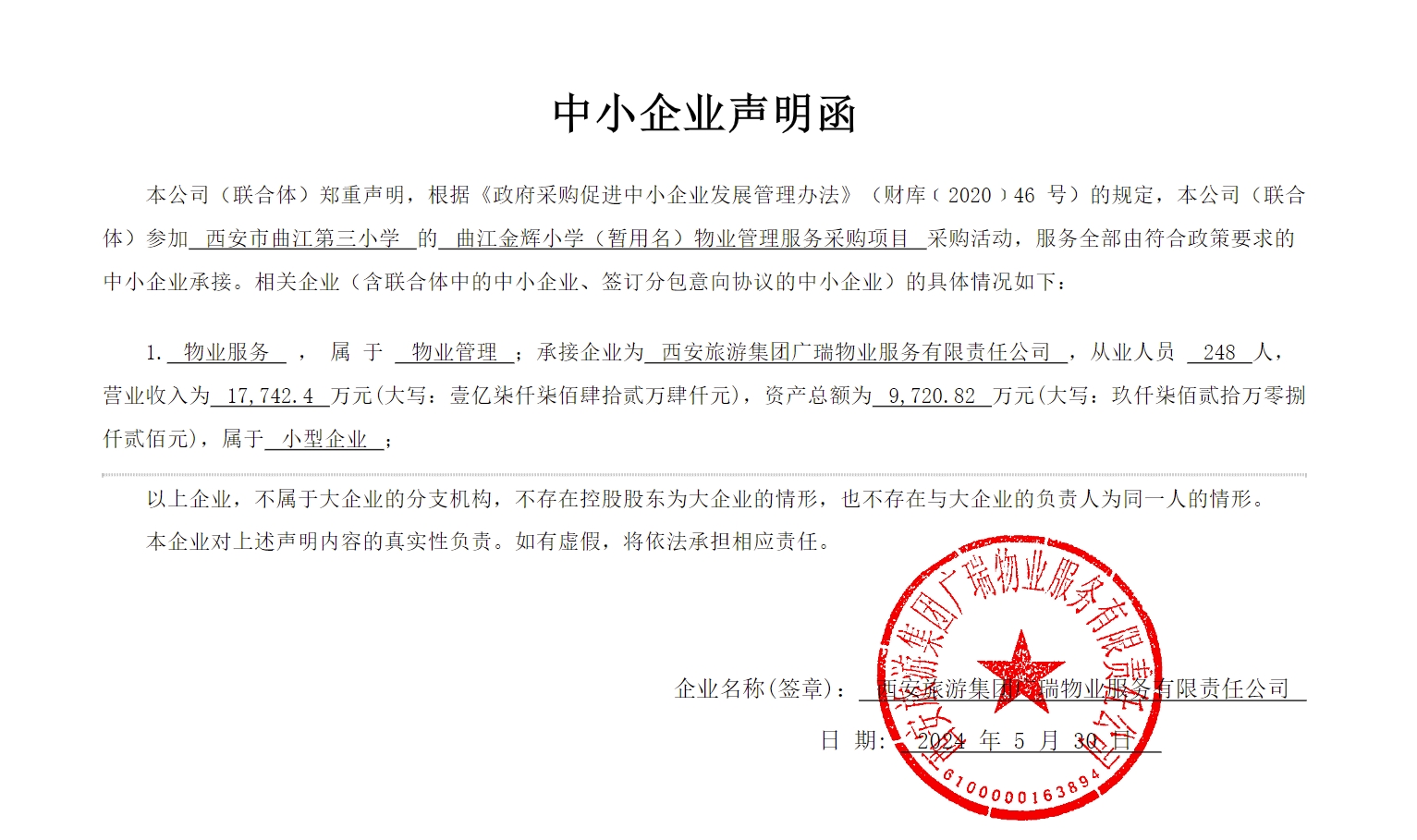 服务类(西安旅游集团广瑞物业服务有限责任公司)