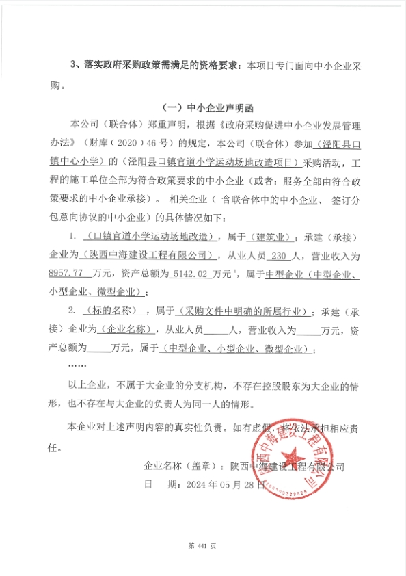 合同包1(泾阳县口镇官道小学运动场地改造项目):
