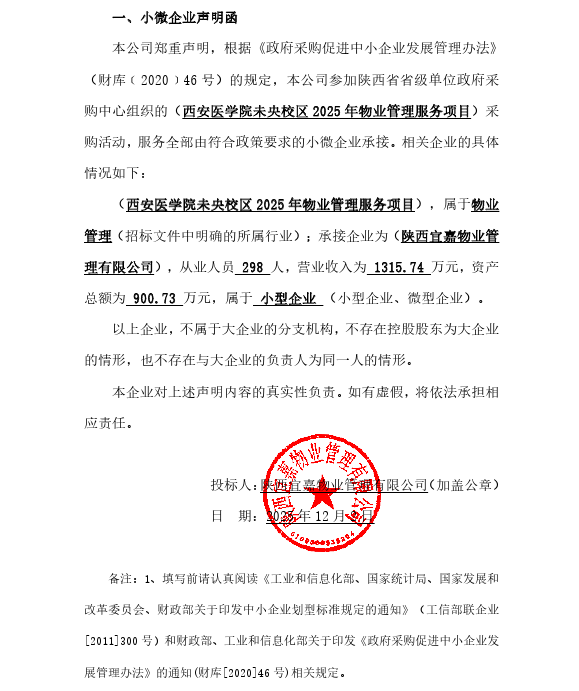 合同包1(西安医学院未央校区2025年物业管理服务项目):
